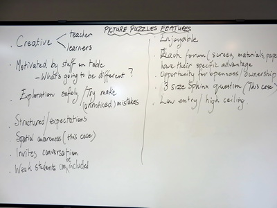 These teachers at the 2015 Cape Town conference of the Association of International Schools of Africa (AISA) may look like they are calmly working on their choice of problems from the Pub Menu, but you should see them on video when they have their 'aha' moments!