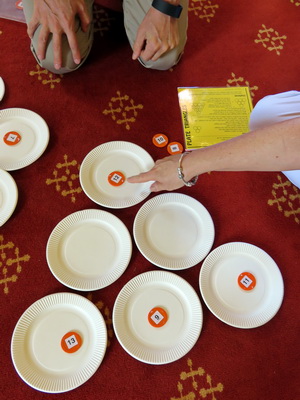 | Task 28, Plate Triangles, was a developed on the floor of a classroom at Milikapiti School, Melville Island. Ever since, it has needed significant floor space to investigate, as these teachers discovered in their workshop this week. This was one of several tasks, Picture Puzzles and whole class investigations during the day which were linked by Triangle Numbers. The title of the workshop was Working Like a Mathematician in the Classroom. |