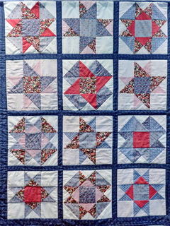 | This superb example of quilting was photographed in a display at St. John's Uniting Church, Cowes (Australia). Some of the pieces of a 7-piece tangram are used in the design and, apart from the borders, they are the only pieces. The photo was crying out to be included in the Tangram Teasers task and that's where you will find it - in larger size and linked to an even high resolution version you can save for display or projection. (Please acknowledge its creator.)