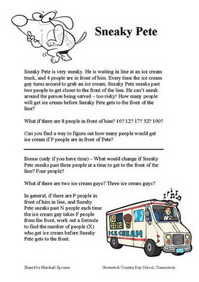Eric The Sheep waiting in a line to be shorn becomes Sneaky Pete queuing for ice cream and provides a teaching craft talking point for your next team meeting. Thanks to Marshall Spooner, Greenwich Country Day School, Connecticut, who shares his many years of experience using Eric The Sheep with Year 8 classes.