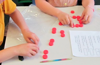 Easy to state and easy to start. Various small press-seal sandwich bags of red plugs are hidden around the classroom. The first job is to find them. The second job is to count the number you find and check it another way. The third job is to share the total of the found plugs among all the children who have been hunting.