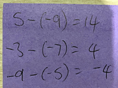 ... positive 5 take away negative 9 = positive 14 ...