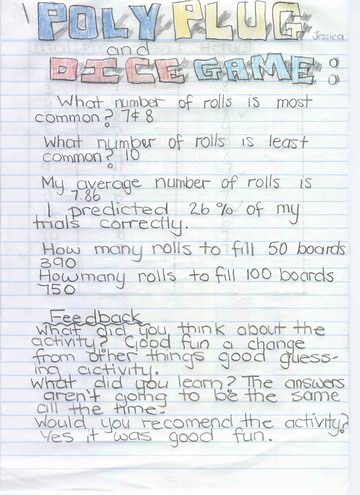 • One class examined the possible rolls to fill the board under the headings of Impossible, Improbable and Possible.