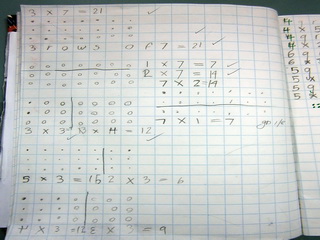 5. When children are developing confidence with a mental image of the times tables, introduce one two digit number and encourage using graph paper and the straw to make rows of 10 ... because the 10 times table is so easy. Later work towards a mental image.