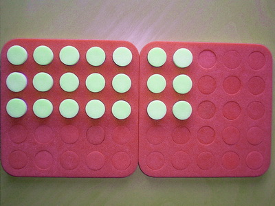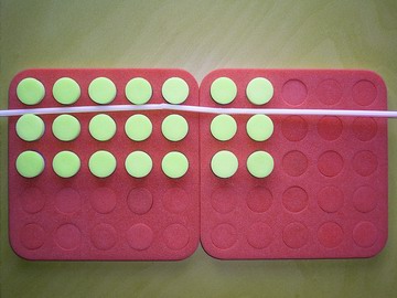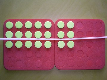1. Ask students to take any number of plugs out of the yellow/blue board and arrange them in equal rows.