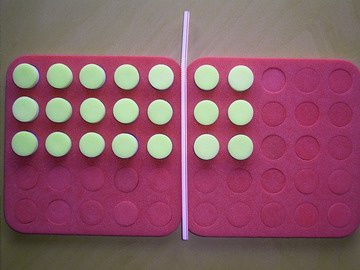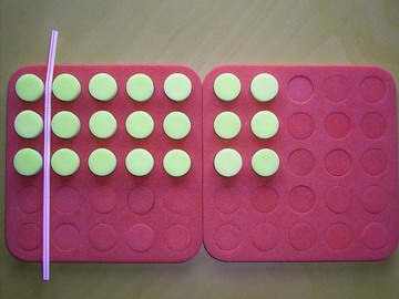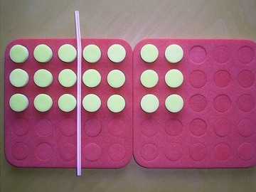 1. One student hides a plug board which shows an array of equal rows with one or two straws on it. Remember the straws must be at right angles.