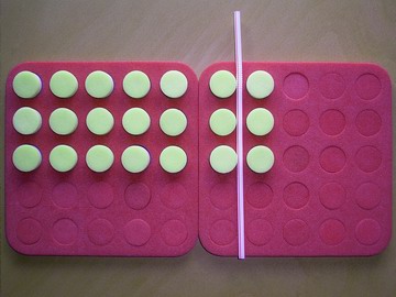 2. Count the total number of plugs and then talk and write equations showing how the rectangle can be divided. Multiple numbers of straws can be used to show the partitions.