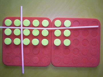 Of course you can place the straw anywhere to help you work out these times tables, but we have used the plugs so much that you probably know all the answers if it's rows of 5 or less, so it might be a good idea to look for rows of 5.