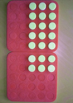 2. It is a little quicker organising the game if you use the yellow/blue board and simply turn the plugs over to make a contrasting array.