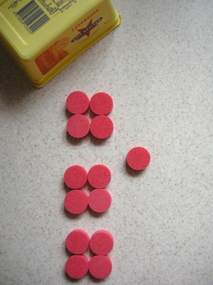 - What happens if we play the game with three children? Two count out (and check) some red plugs then close their eyes. The third person plug catches all, some or none from each of the piles and the other two have to work out the total 'eaten' by the catcher.