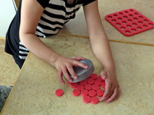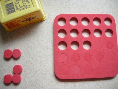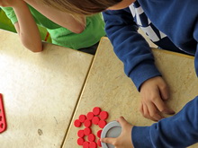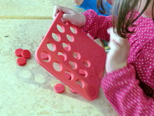 Partners take some plugs out of the red board and leave the board available on the table. The number of plugs used doesn't really matter, but for the least experienced children you might like to limit them to ten.