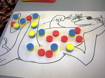 - Today your creature can only use 20 spots, but they can be any of the colours. Find 5 ways to spot your creature. Make a table of red, yellow and blue to record each picture you made.