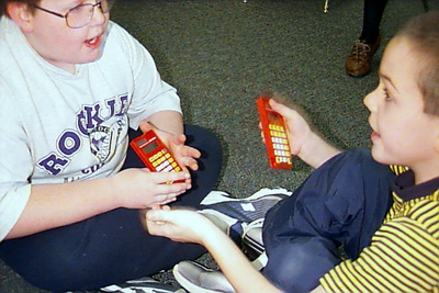 Sometimes too, move among the pairs and interrupt their game long enough to challenge them to demonstrate the problem they just did by using the yellow/blue Poly Plugs.