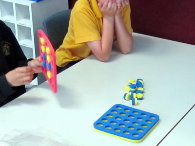 The activity can be explored with the whole class as an introduction if the teacher (or a chosen child) hides the plugs first. Once understood, it can be played as a game for two players for a time period or number of games. Younger, or less experienced children can start with five yellow/blue plugs and build up to ten.