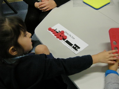 Use your Poly Plug to be any number of pretend children. Some classes use the activity at tables of four. Each child is a station and the train is 'chuffed' from child to child.