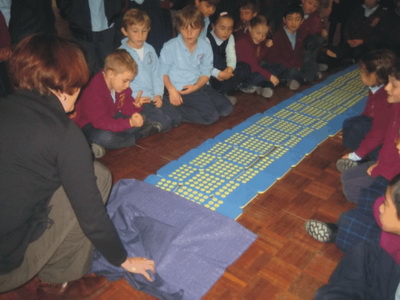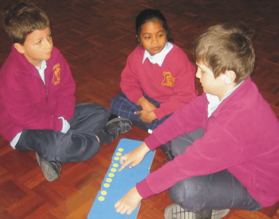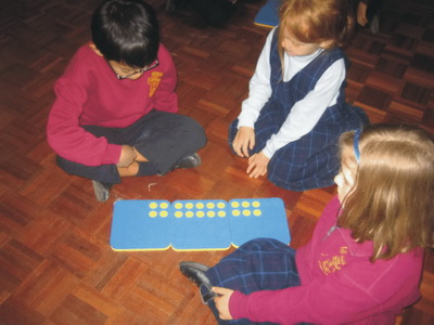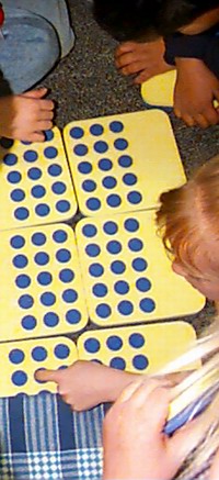 | This activity combines the physical representation of what is being counted with the symbolic representation of the count recorded on the calculator. It develops and extends a brain picture of serial counting far beyond just chanting. The technique of encouraging guessing involves the learner by requiring personal commitment to a prediction and evidence of how the hypothesised number is checked.