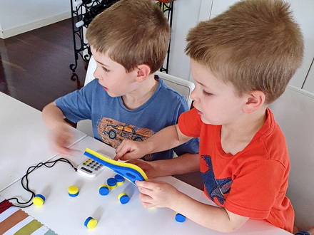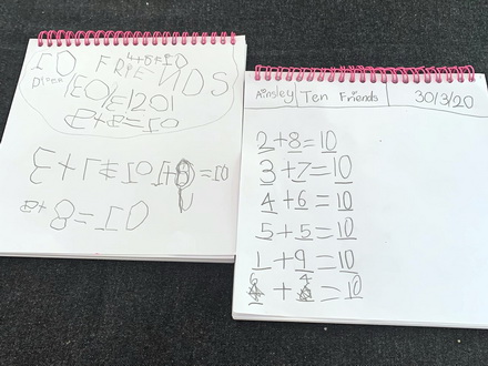 Sisters exploring and enjoying their first play with Ten Friends. They both recorded in their maths journals. One a 41/2 year old pre-schooler and one a 73/4 year old Year 2.