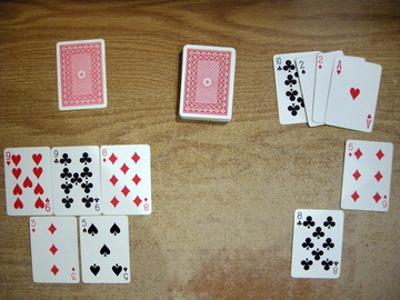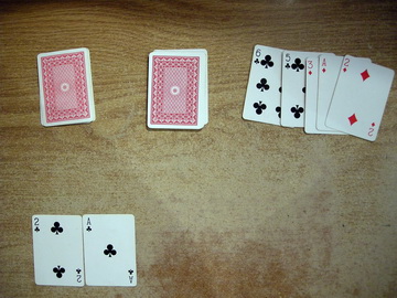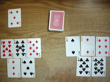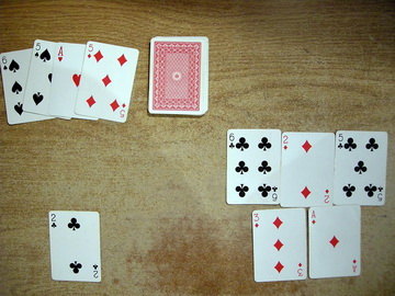 - If Player A doesn't use all their cards to make tricks they take the top card from the deck and wait for their next turn.
