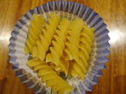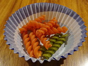 The activity can be adapted to equipment such as patty cake papers with pasta twists.