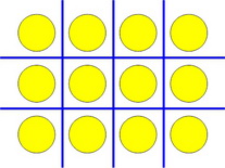 Arrange your objects in three (3) rows of four (4) like the yellow plugs in the photo.