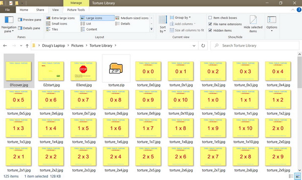 - Extract all the photos into the Torture Library.