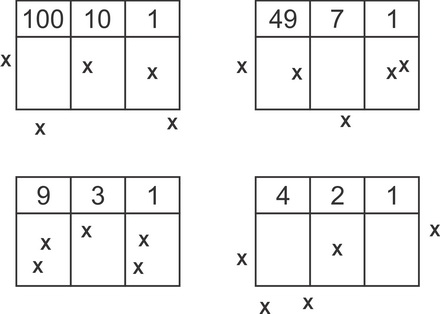 In your journal explain how to find the total on the 100/10/1 board just by looking. No calculation needed.