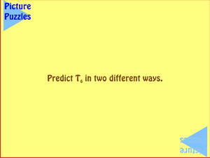 At this point students may be thinking of the T numbers as towers and the next one after the four in the previous slides must therefore be a tower of 5. We can't predict how students will respond to the request to predict T5, but one way is to sum 1 + 2 + 3 + 4 + 5 = 15.