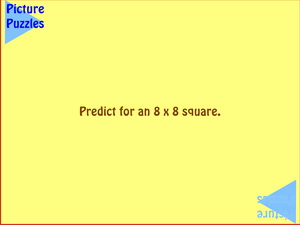 The final part of this Picture Puzzle encourages generalisation to any size square and the description of this generalisation in algebraic symbols.