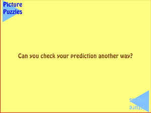 As an extra challenge, they are asked to check their prediction another way. This is not only application of a mathematician's question (see Working Mathematically), but learners who can check their work in more than one way are becoming independent. Independent learners allow teachers to change the way they use their time.