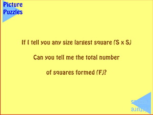 - F = S(S + 1)(2S + 1) / 6 where S is the largest size square.