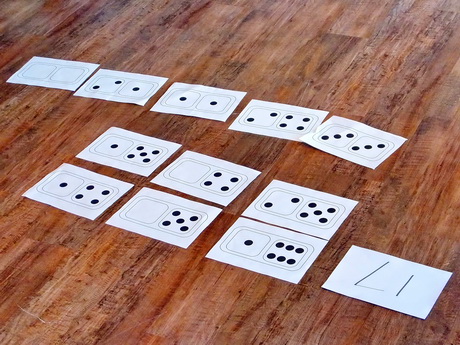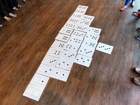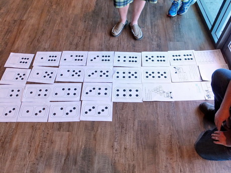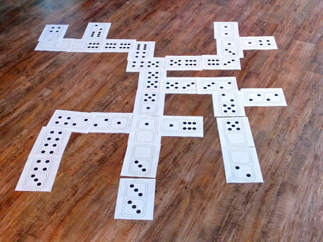 Work together to arrange your dominoes on the floor. |