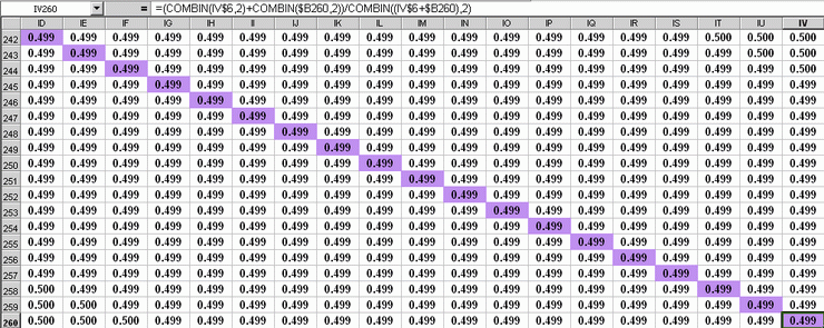 approach made it straightforward to search for fair games on Excel using COMBIN. The