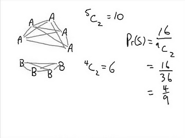 I used the task in my Year 12 Methods class last week and we had a good time with it. In particular we used simple line diagrams to show the probabilities and this naturally lead to using the Combinations Function for calculating the probabilities (incidentally we derived the combinations function last year using Task 129, Farmyard Friends). | |