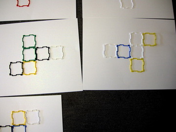 Note: If the students happen to not produce different nets, the teachers can unfold their one in a different way as a stimulus to look for others. It is also not necessary to be told before beginning the investigation that there are 11 nets. The mathematician who first investigated these didn't know that. However, if the investigation languishes, it is a fact that can be dropped in to revitalise the search. However, if the equipment is not available, the Maths At Home version above is a very good substitute. For more ideas and discussion about this investigation, open a new browser tab (or page) and visit Maths300 Lesson 116, Cube Nets. |