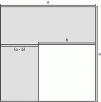 Difference Between Two SquaresTask 64 ... Years 6 - 10SummaryWooden pieces model what happens when a smaller square is placed on top of a larger one and in one of its corners. An L shape is formed which can be cut into two rectangles. This L shape is the difference in area between the two squares and because dimensions of the two original squares are known, the dimensions of these rectangles (and hence their area) can be calculated. The result is a powerful algebraic rule that often simplifies calculations. |