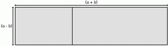 Using square paper, the largest square that can be drawn is Size 16. Read out the class list and assign a number from 1 - 16 to each person (it doesn't matter if you have to repeat). This way partners will not always have the same difference between their two squares. The assigned number is the size of square they have to cut out. (You will need one pair of scissors per pair). Arrange for each pair to compare their two squares, as above, and discuss the representation of the difference. Ask each pair to cut out this L shape then divide it into two rectangles. The first challenge is to make these two rectangles into one rectangle, and the second is to discover how the dimensions of this single rectangle relate to the dimensions of the original squares. As students discover that the same type of relationship is true for all their squares, the generalisation above can be developed and applied. At this stage, Difference Between Two Squares does not have a matching lesson on Maths300. |