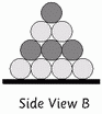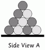 All faces of a regular tetrahedron are identical, so the Side View is also the Base View. This realisation helps work out a 5 layer tetrahedron. Continuing from above gives: