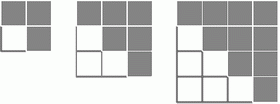 It seems that to find the sum of the Triangle Numbers it will first be necessary to sum the Square Numbers. So another new challenge arises. Not necessarily Year 12 stuff since Greek mathematicians were able to derive a formula using spatial reasoning, but definitely open again to checking the solution by Mathematical Induction. Extension BAnother direction for the iceberg begins with the question: