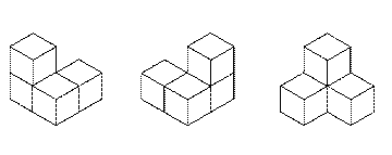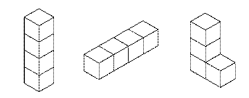 To run this as a whole class lesson you will need lots of cubes. Linking cubes such as Multi-Link are less satisfactory than cubes that don't join because linking cubes permit students to include cantilever sections in the design - cubes that 'stick out' into the sky and would in real life need posts to support them. These are not allowed in the problem. Once you have the equipment the problem is easy to state and easy to start. There is considerable support in the Maths300 lesson and some amazing Classroom Contributions. For more ideas and discussion about this investigation, open a new browser tab (or page) and visit Maths300 Lesson 118, Four Cube Houses. |