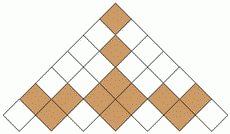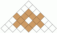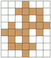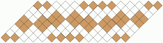 ChallengeThe challenge on the card is not one that should have its solution revealed, so it's not here. (It is right at the bottom of the page, so don't look unless you are so frustrated you are about to jump off a cliff.) Reasoning suggests that 6 lines of 4 implies 24 brown tiles, but only 12 are allowed. So, each tile must be in two lines. Now play with it.ExtensionsUsing multiple copies of any of the design units new designs can be created by applying mathematical transformations. Students can make multiples on the Recording Sheet and cut them out, or, as has been done here, they can make a master of the playing board using software, colour using the software tools then use the transformation tools of the software to create extended designs. For example, the first design above can be translated to produce: