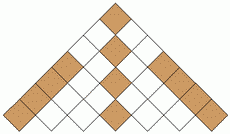 It helps too to begin the lesson on the floorboard (rather than blackboard or whiteboard) using large squares of card, say 20cm x 20cm, which are printed or coloured differently on each side. Hand a card to each student (you need 28) and organise them to produce the 'arrowhead' with the same colour showing up on all tiles.