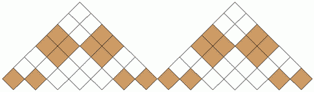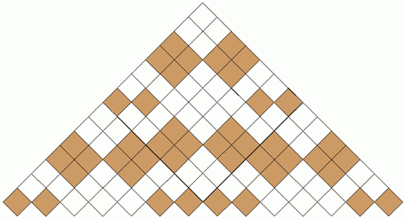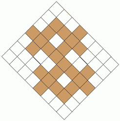 The next one is made from three upward pointing and one downward pointing element. Can you find them? The top one has also been made to overlap the top row of the downward pointing one - where the double diamonds are.