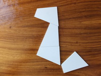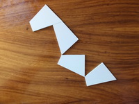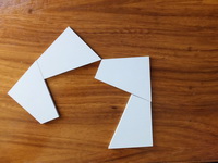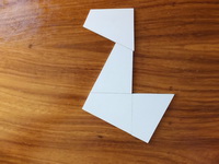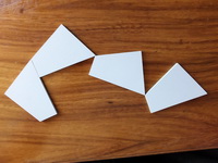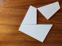 Which square? The four piece one or the five piece one?Either one actually depending on which way you rotate, but when you make the five piece one there is a hole in the middle into which the small square piece will exactly fit. Challenge the students to create both squares in this way and sketch how they do it.