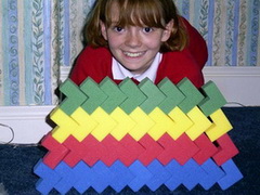 This is a great task to turn into a whole class investigation, but you must have a class set of Tricubes. Basically the lesson follows the structure of the card, although you might explore 2-Tricube objects before tackling the Challenges. Doing so provides extended opportunity for discussion and development of concepts, developing awareness of counting strategies, refinement of isometric drawing skills and activation of the spatial perception required to tackle the Challenges.
