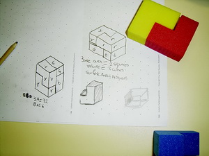 Use the lesson to develop the 'check it another way' approach above, isometric drawing skills and measurement concepts. Then in the next lesson students will tackle the 'surface area' chapter exercises with vigour and comment on how easy they are.