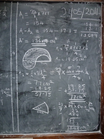 At the moment I am trying to show teachers that the way to go in Maths is not teaching formulas and copying never ending maths equation from the board. I am doing demo lessons and the kids really enjoy them. I have attached a picture I took of the board in a Grade 6 classroom just last week.