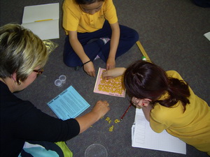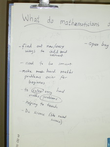 Recently Great Ryrie Primary School took another professional development step and were introduced to more aspects of Working Like A Mathematician through discussion lessons. Prep teachers learnt about Threaded Activities with Counting Frames from Calculating Changes. Years 1 & 2 explored a whole class investigation using Eric The Sheep. Years 3 & 4 were introduced to their new kit of 100 tasks. These photos are from Years 3 & 4 where the teachers began by grouping the children and asking what they thought a mathematician did for a job. Very soon the students' work began with an interesting problem too, just like a mathematician.