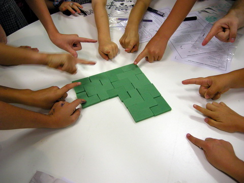 At a mathematics workshop for students in Wagga Wagga, these children were very excited about combining their Trisquares to make a Size 4.