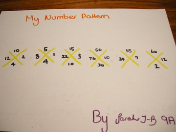 Find My Pattern then suggests students are invited to round off the investigation by creating their own pattern challenges for others. Based on an idea found in another source, Bev's students put a lot of work into creating pattern challenges such as those shown here.
