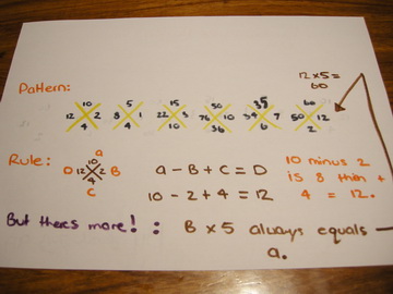 This includes going outside and giving students large size number cards with the challenge of arranging themselves in a pattern. After some simpler examples the students are expected to find their way through a pattern that involves adding one term and subtracting the next. This devious approach to developing patterns was originally developed by Year 4 students and led to the task above.